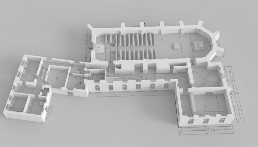 Mit den 3D Gebäude Scans von 3D-Laseraufmass.eu erhalten Sie millimetergenaue 3D-Aufmaße für Ihre Planung. Unsere Lidarscanner liefern exakte Punktwolken als Grundlage für 3D CAD, BIM und As-build Planzeichnungen.